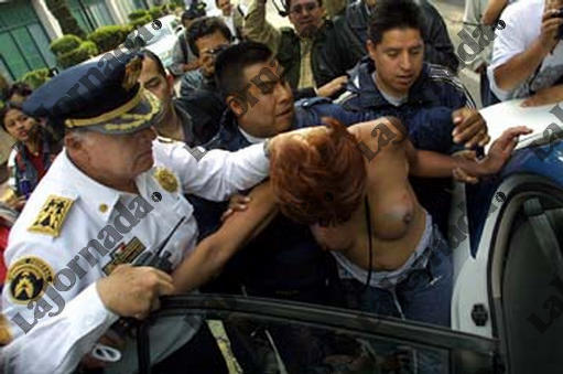 Un trasvesti es detenido por elementos de la SSP, durante los festejos en el angel por el pase a la siguiente ronda del la seleccion nacional en el mundial, el 13 de Junio del 2002. LA JORNADA/ Jose Carlo Gonzalez