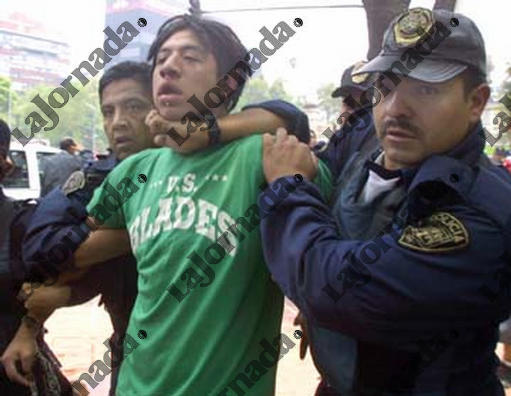 Durante el operativo implementado por la Secrtetaria de Seguridad Publica, hubo varios jovenes detenidos en torno al Angel de la Independencia, debido al partido entre Mexico contra Italia, el 13 de junio de 2002. LA JORNADA / Francisco Olvera.