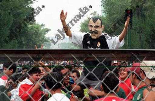 Aficionados festejan en el Angel de la Independencia la victoria de la seleccion nacional sobre Italia con lo cual se pasa a la siguiente ronda en el mundial de futbol, el 13 de junio del 2002. LA JORNADA/ Yazmin Ortega Cortes