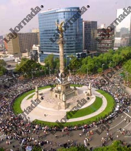 Los capitalinos celebran en torno del Angel de la Independencia el pase a la siguiente fase de la Seleccion Mexicana de Futbol, la panoramica desde el hotel Sheraton. LA JORNADA / Francisco Olvera