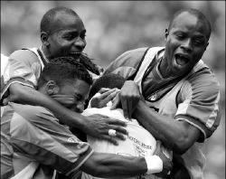 El duelo se concretó con una genialidad de Camara y al final los triunfadores realizaron una danza africana en la cancha.