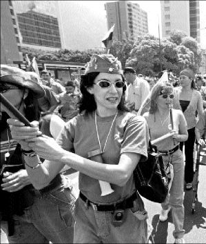 En medio de nuevos rumores golpistas, un grupo de militares en retiro y vestidos de civil, aunque mostrando sus uniformes colgados en ganchos, encabezaron una marcha pacífica de unos 5 mil opositores de sectores medios y pudientes con la intención de llegar al Palacio de Miraflores, pero no pudieron lograrlo porque otros miles de los seguidores de Chávez se apostaron en la zona para impedirlo.