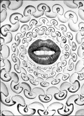 una boca rodeada de algo que aparenta ser como un diseño abstracto.