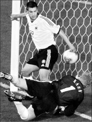 Miroslav Klose, también con la cabeza, estrelló un balón
