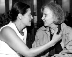 la escritora Luisa Valenzuela y uno de los personajes de su novela, Ava