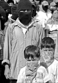 Los campesinos en plantón, la mayoría tzeltales, manifiestan en cartulinas (esas "mantas" de emergencia) su oposición "al Plan Puebla-Panamá, la privatización de nuestra riqueza natural, la venta y compra de tierra y el acaparamiento individual de la tierra".