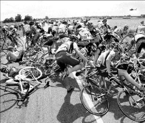 una caída masiva, a 22 kilómetros de la meta, lo que provocó