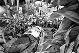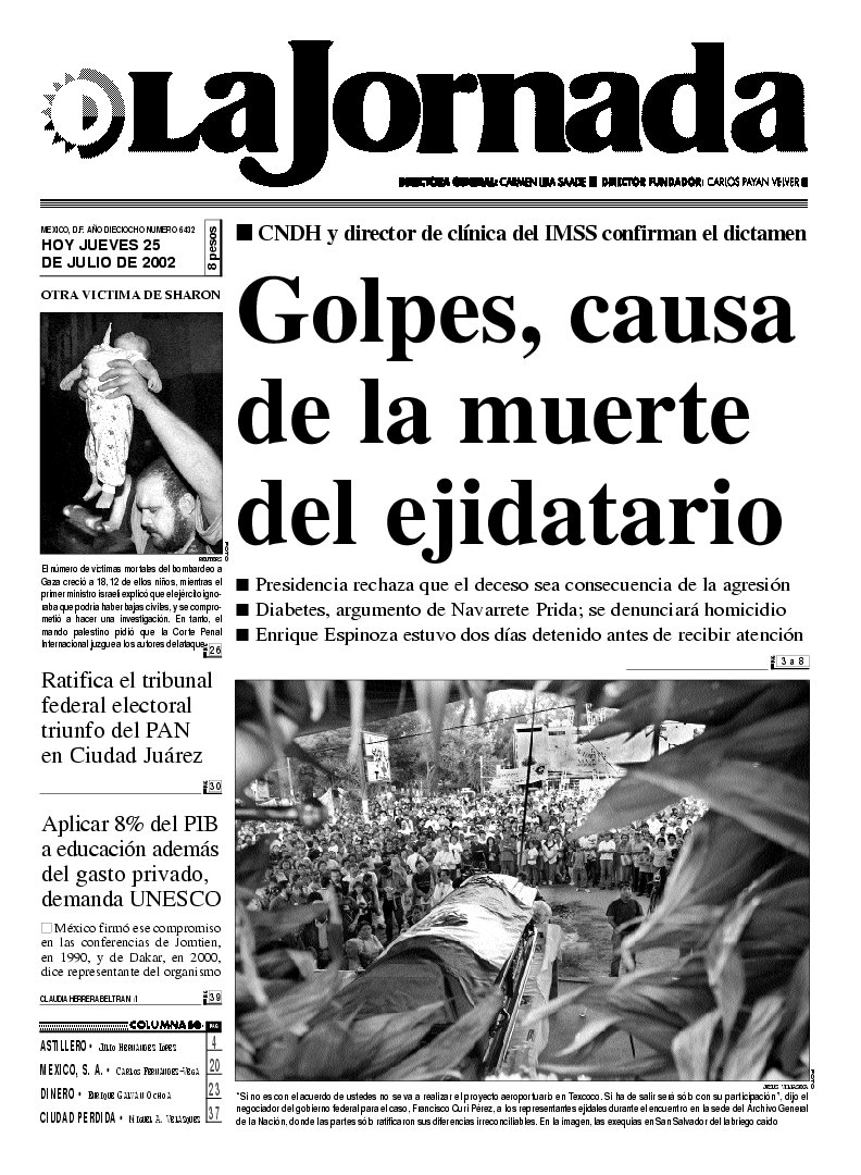 ``Si no es con el acuerdo de ustedes no se va a realizar el proyecto aeroportuario en Texcoco. Si ha de salir será sólo con su participación'', dijo el negociador del gobierno federal para el caso, Francisco Curi Pérez, a los representantes ejidales durante el encuentro en la sede del Archivo General de la Nación, donde las partes sólo ratificaron sus diferencias irreconciliables. En la imagen, las exequias en San Salvador del labriego caído FOTO JESUS VILLASECA