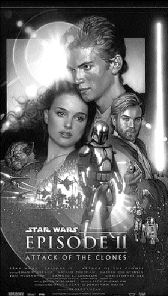 El Episodio II: el ataque de los clones hace la crónica de cómo el joven Anakin Skywalker (Hayden Christensen), aprendiz de Obi-Wan Kenobi (Ewan McGregor), inicia un romance con la ex reina y ahora senadora Padme Amidala (Natalie Portman), a quien se supone debe proteger como la versión Jedi de un guarura, pues corre el peligro de ser asesinada por el movimiento separatista encabezado por el conde Dooku (Christopher Lee), que amenaza a la República. Eso que he resumido en unas líneas está inflado por varias subtramas de escaso interés y rematado por el ataque epónimo, una batalla entre clones y droides, en la que Lucas ejerce su fascinación por la tecnología digital, aproximando su película a la categoría de dibujos animados.