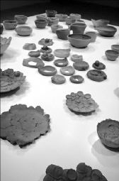 en un taller de cerámica y salieron 70 piezas de varios tamaños.