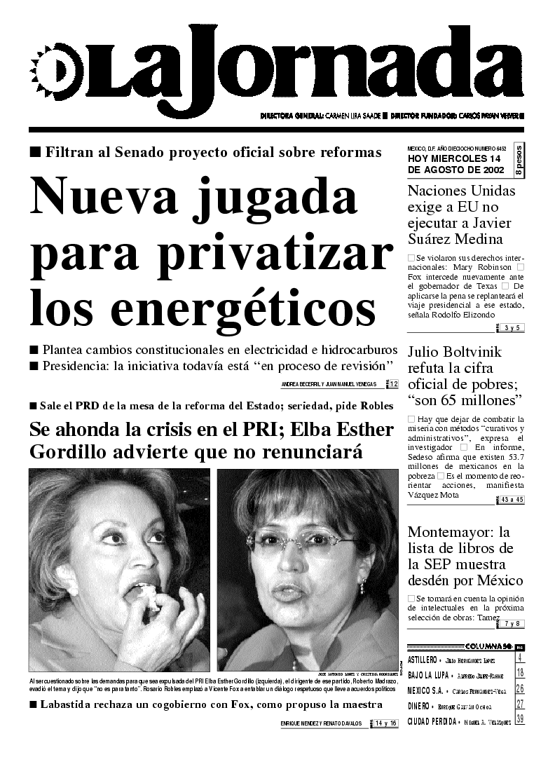 Labastida rechaza un cogobierno con Fox, como propuso la maestra