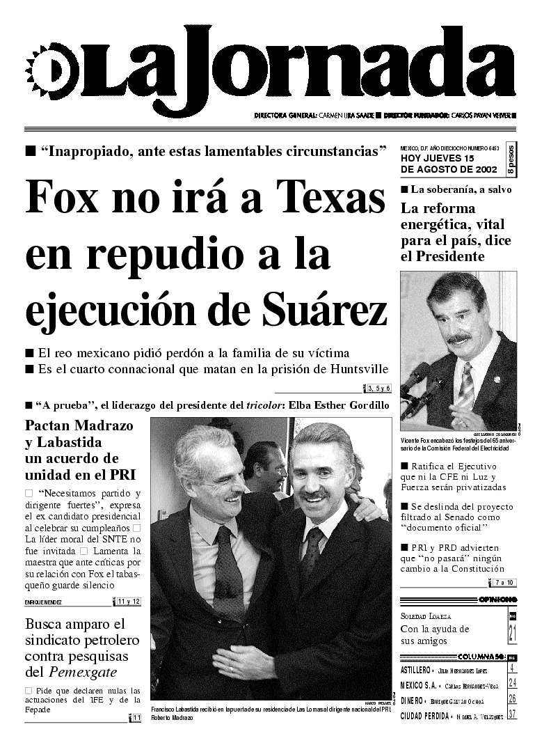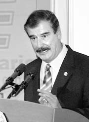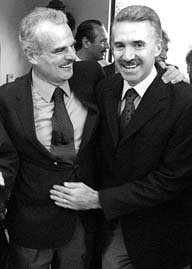 Francisco Labastida recibió en la puerta de su residencia de Las Lomas al dirigente nacional del PRI, Roberto Madrazo FOTO MARCO PELAEZ
