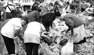 NOPALES GRATIS  Mujeres recogen productos de desecho en la sección de hortalizas y verduras de la Central de Abasto FOTO JOSE ANTONIO LOPEZ