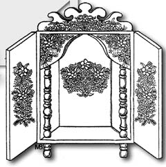 La decoración floral es exuberante y los colores tonos y gamas se arreglan con gusto tal, que cada pieza adquiere un carácter propio; el cuidadoso trabajo que se requiere para terminar una pieza puede tardar meses. La mayoría de los camerines y las cruces se hacen por encargo.