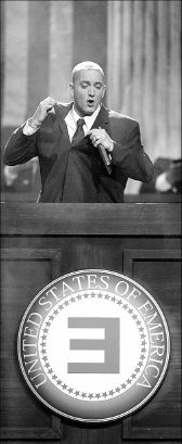 Cuando recibió el Moonman por el mejor vídeo de artista masculino (por Without me), fue recibido con silbidos en el Radio City Music Hall. Su enemiga personal, Christina Aguilera, embutida en una faldita extremadamente corta, le entregó el trofeo casi asqueada, lo que parece que animó al notorio pendenciero rapero a lanzar provocaciones contra el músico tecno Moby.