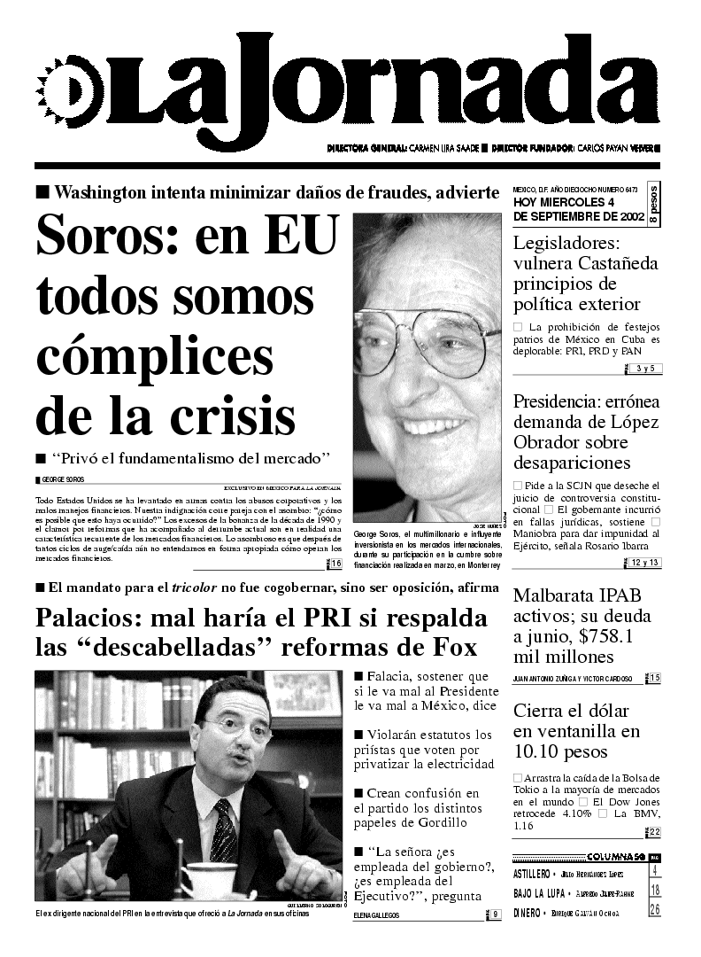 GEORGE SOROS EXCLUSIVO EN MEXICO PARA LA JORNADA