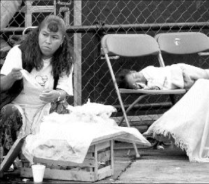Vendedora ambulante y su hija, en el Centro Histórico