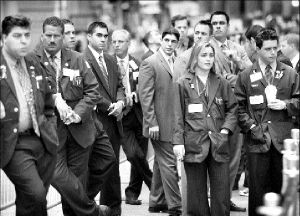 Operadores de la bolsa de valores de Nueva York guardan