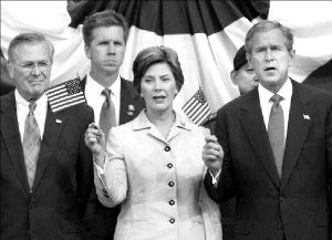 El mandatario y la primera da-ma, Laura Bush, comenzaron