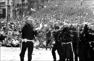 en el que la policía disparó balas de goma contra los manifestante,