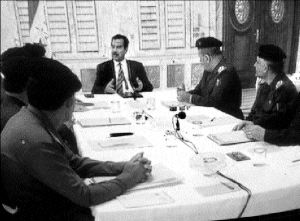 Antes de conocerse la decisión de Irak de aceptar el regreso incondicional de los inspectores de armas de la ONU, Hussein presidió una reunión conjunta de la dirección del gobernante partido Baas y del gobierno, y examinó con los altos cargos iraquíes las amenazas estadunidenses de lanzar una ofensiva militar, informó la agencia oficial Ina.