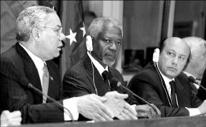 El secretario de Estado estadunidense, Colin Powell, está presionando al Consejo de Seguridad -a través de negociaciones con sus miembros permanentes- para aprobar una sola resolución que definirá de forma específica cómo debería cooperar Bagdad con los inspectores de armas de la ONU y que autorizaría una acción militar si el régimen iraquí fracasa al cumplir con estas condiciones en un plazo fijo.