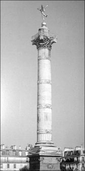 El hermano mayor de nuestro Angel, o primero en construirse, fue el de París, exactamente en la plaza de la Bastilla, donde existió la famosa cárcel destruida durante la revolución francesa de julio de 1789. El monumento, conocido como la Columna de Julio, se construyó entre 1830 y 1840 en honor a los revolucionarios muertos durante la insurrección de julio de l830; algunos yacen allí y sus nombres se encuentran inscritos en la base de la columna rematada por un capitel. Un ángel dorado y desnudo -este sí hombre-, afianzado en un solo pie sobre un globo, intenta elevar el vuelo sosteniendo una cadena rota en la mano izquierda. El parecido con el de México es digno de anotarse.