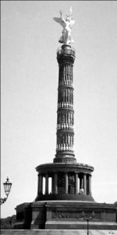 El caso de Berlín tampoco es tan distinto. Con el nombre de Columna de la Victoria, el monumento que hay en esa ciudad fue construido entre 1870 y 1873 con motivo de la unificación del estado prusiano, posterior a sus victorias militares. Por ello no es, como en los casos de París y México, un mausoleo. De su sitio original frente al famoso parlamento del Reichstag fue trasladado en abril de 1939, con motivo del 50 aniversario del nacimiento de Adolfo Hitler, hasta una glorieta del parque Tiergarten. El Angel alemán que remata la columna es una figura dorada femenina de fuertes rasgos, coronada por un casco militar; se sostiene también en un solo pie, pero en la mano izquierda empuña una guirnalda y en la derecha un bastón de mando. Ambos hermanos, el de París y el de Berlín, fueron sin duda inspiración del Angel mexicano, pues se construyeron 80 y 35 años antes, respectivamente.
