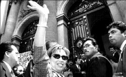 que lo esperaban a las puertas del recinto -en respuesta al llamado del