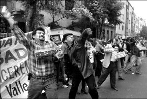 De pronto, una lluvia de huevos cayó sobre la sede sindical. Al grito de "Elba Esther asesina", los profesores repitieron la historia del martes pasado en Morelia, cuando a Sanjuana Cerda Franco, enviada del SNTE, le arrojaron huevos y harina, sólo que ahora descargaron su enojo sobre el edificio de la calle de Venezuela.