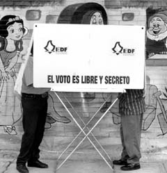 Votación en una de las más de 6 mil mesas instaladas en el Distrito Federal para el plebiscito sobre la construcción de los segundos pisos en el Periférico y Viaducto Miguel Alemán FOTO ALFREDO DOMINGUEZ