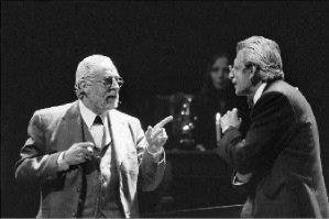 La obra teatral de Ignacio Solares titulada La moneda de oro llega a la función número cien en el teatro Wilberto Cantón de la Sogem (José María Velasco 59, San José Insurgentes), donde se presenta de viernes a domingo. Aborda los encuentros/desencuentros entre Sigmund Freud y Carl Gustav Jung, representados por los actores Miguel Solórzano y Jorge Avalos. También participa la actriz Mónica Serna FOTO BARRY DOMINGUEZ