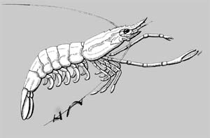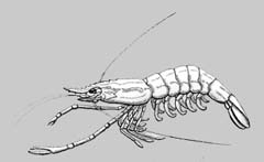 Se desplaza en el agua con movimientos rítmicos, remando con las patas y la cola, que también le sirve de timón. Utiliza sus antenas y ''barbas" para orientarse y comunicarse. Cuenta con manos articuladas, en los extremos rematan con tenazas, parecidas a las de los cangrejos. Le gusta vivir en lugares de aguas cristalinas y poco profundas, en clima templado y cálido, y ahí donde la luz del sol permite la vida de pequeñas algas y animales diminutos con los que se alimenta. Tiene dos pequeños brazos articulados; usualmente uno más desarrollado que el otro.