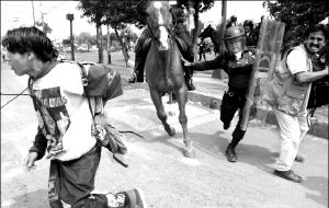 Un camarógrafo señaló haber sido agredido por un granadero que lo despojó del casete de su cámara. El subsecretario afirmó que se investiga la identidad del uniformado y se comprometió a dar seguimiento a la denuncia correspondiente y devolver el material robado en cuanto sea localizado.