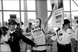 Ejidatarios y colonos procedentes de Cuernavaca realizaron una protesta en la tienda de autoservicio Costo-Comercial Mexicana de Periférico y San Antonio, por el ''ecocidio'' que comete esa trasnacional en perjuicio del ex hotel morelense FOTO JESUS VILLASECA