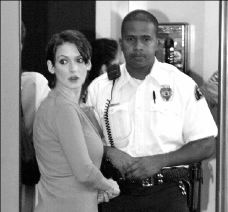 La actriz Winona Ryder cruza un detector de metales a su llegada a la corte de Beverly Hills, donde ayer comenzó el juicio en su contra por robo a un centro comercial, situación que obligó a su detención en diciembre del año pasado FOTO REUTERS