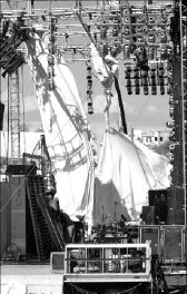 de luz, gigantescas lámparas, equipo de audio, estructuras escenográficas,