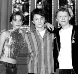 Sobre los adolescentes, el productor Heyman se refiere a los tres jóvenes actores protagonistas: Daniel Radcliffe (Harry Potter), Emma Watson (Hermione Granger) y Rupert Grint (Ron Weasley), los cuales también participarán en la tercera parte, y que en la segunda, ya con 12, 12 y 13 años respectivamente, se muestran como todos unos histriones maduros. "Nos gustaría participar en todas las de Harry Potter", coincidieron los tres en la conferencia.