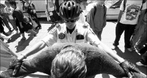 Un grupo de alumnos de la secundaria técnica 89 espera el inicio del acto de instalación de las comisiones de seguridad pública en la zona oriente de Iztapalapa, el pasado 18 de febrero FOTO JESUS VILLASECA