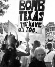 a la guerra por el petróleo" y "Diplomacia, no guerra".