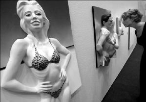 Una visitante examina las piezas de arte tridimensional del italiano Claudio Baroni, en la Feria de Arte de Colonia, que abrió sus puertas este miércoles y exhibe lo mejor del arte moderno con muestras de 260 galerías alemanas y extranjeras. Se espera que cerca de 70 mil compradores, dealers y curiosos la visiten antes de que termine el domingo. La venta del cuadro Le Village en fete (1978), de Marc Chagall, con precio de 2.4 millones de euros, será un momento culminante FOTO AFP