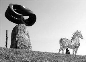 Dos mujeres admiran la escultura en acero de un caballo, realizada por el artista escocés Andrew Scott, colocada al lado de la pieza del japonés Keizo Ushio. Ambas obras forman parte de la exposición Esculturas del mar, que en su sexta versión se presenta en la playa Bondi de la ciudad de Sydney, Australia, e incluye trabajos de más de un centenar de artistas internacionales FOTO REUTERS