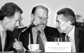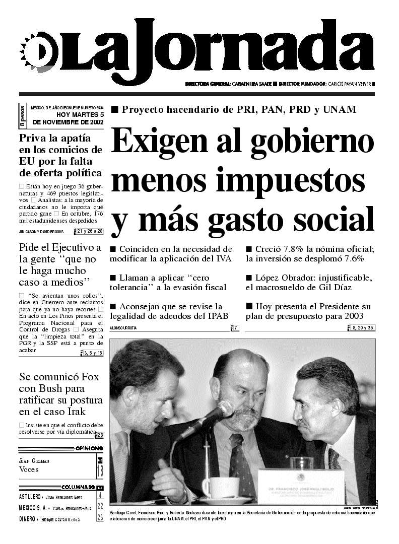 Santiago Creel, Francisco Paoli y Roberto Madrazo durante la entrega en la Secretaría de Gobernación de la propuesta de reforma hacendaria que elaboraron de manera conjunta la UNAM, el PRI, el PAN y el PRD FOTO MARIA LUISA SEVERIANO