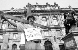 MOVILIZACION DE ANTORCHISTAS  Militantes de Antorcha Campesina se manifiestan frente al palacio