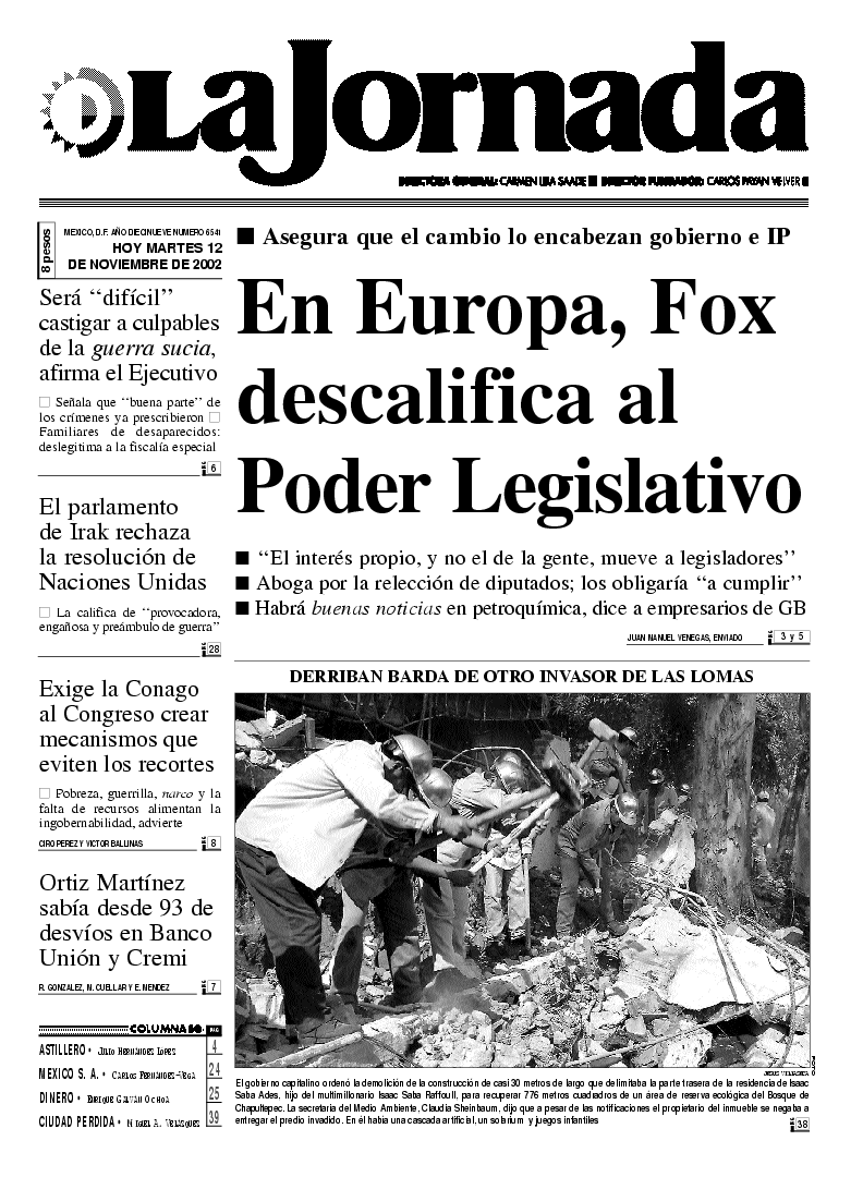 El gobierno capitalino ordenó la demolición de la construcción de casi 30 metros de largo que delimitaba la parte trasera de la residencia de Isaac Saba Ades, hijo del multimillonario Isaac Saba Raffoull, para recuperar 776 metros cuadradros de un área de reserva ecológica del Bosque de Chapultepec. La secretaria del Medio Ambiente, Claudia Sheinbaum, dijo que a pesar de las notificaciones el propietario del inmueble se negaba a entregar el predio invadido. En él había una cascada artificial, un solarium y juegos infantiles FOTO JESUS VILLASECA