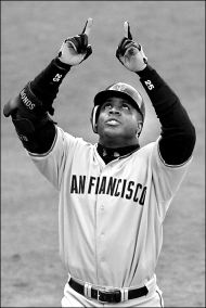 Barry Bonds fue elegido por unanimidad el Jugador Más Valioso (JMV) de la Liga Nacional y pasó a la historia como el primer pelotero que obtiene cinco veces ese reconocimiento, pero ninguna de las anteriores la ganó con la contundencia de 448 puntos, el máximo posible, que le redituarán un premio de 500 mil dólares, que se suman a los 13 millones de dólares que percibió esta temporada. Bonds fue el JMV de 1990 y 1992 con los Piratas y de 1993 y 2001 con los Gigantes. Es el primer jugador que gana el reconocimiento dos años consecutivos en dos oportunidades. El año pasado rompió el récord de jonrones en una temporada al batear 73. Esta campaña pegó 46 y produjo 110 anotaciones para ayudar a los Gigantes a obtener el título de su liga por primera vez desde 1989. FOTO REUTERS
