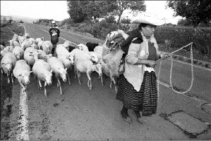 Pastoras con sus ovejas sobre una carretera del estado de México FOTO LA JORNADA
