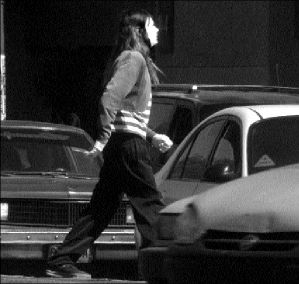 Un mimo entre el tráfico automovilístico