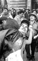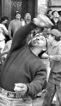 Unos 30 mil profesores llegaron al Zócalo para pedir castigo contra la lideresa moral del magisterio por la represión a la disidencia. Uno de los contingentes lanzó huevos contra la sede del SNTE FOTOS JOSE CARLO GONZALEZ