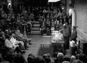 La autopsia se transmitió en vivo por un canal londinense de televisión. El médico aclaraba en voz alta los detalles mientras extraía corazón, pulmones, hígado y cerebro para mostrarlos de cerca al público. Las reacciones apuntaban a definir el ''espectáculo" como fascinante, aunque las cámaras televisivas mostraban a una jóven espectadora temblando de manera incontrolable y a otra que prefería taparse los ojos a medias.